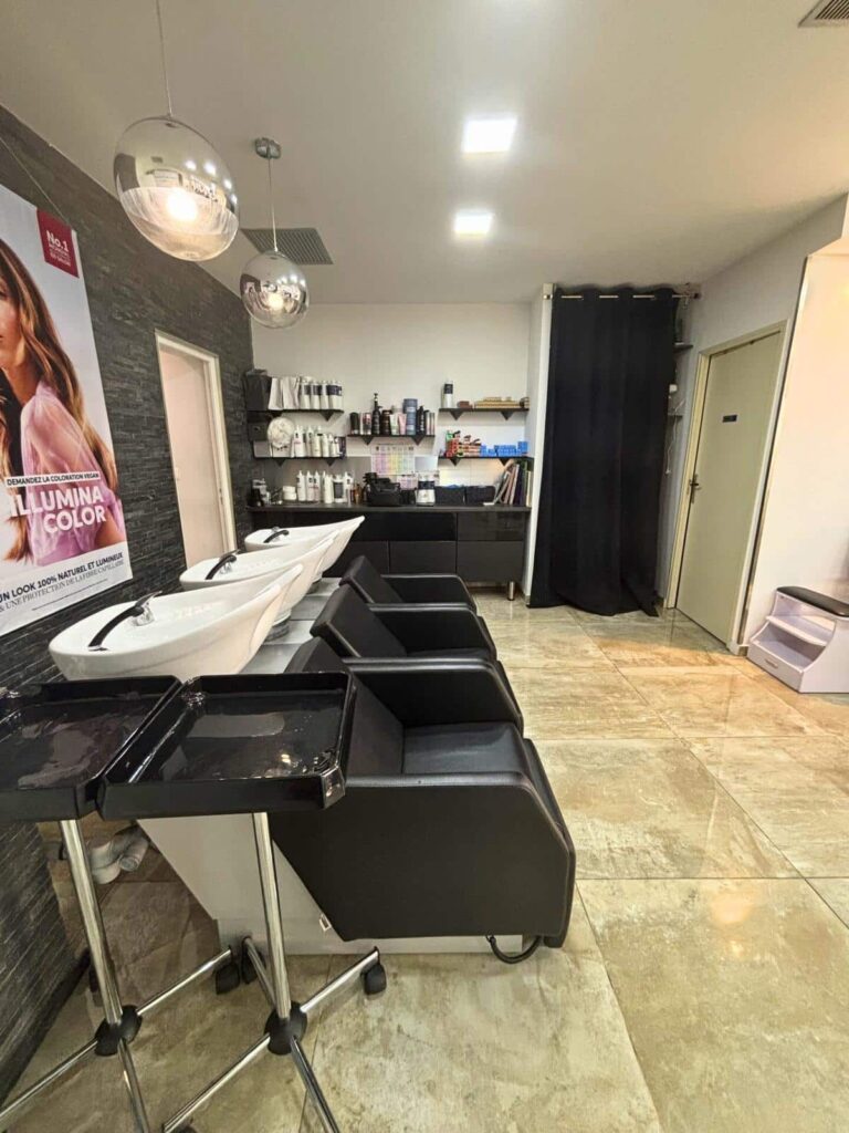 Actuellement exploité comme salon de coiffure et esthetique, il se compose d'une grande salle principale, de trois cabines de soins, d'un coin cuisine avec débarras et de toilettes avec lave-mains.