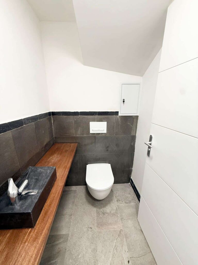 Mur en pierres, éclairage led, climatisation gainée, electricité aux normes, extraction d'air dans la cuiisine, porte d'entrée double vitrage et contours alu.