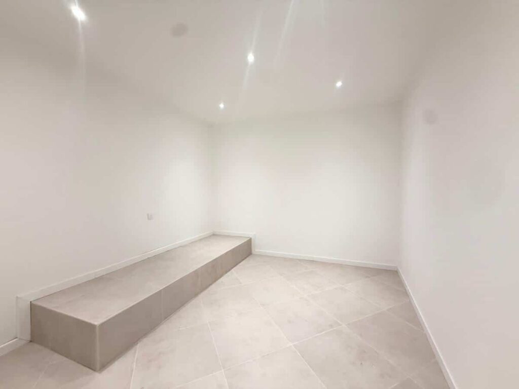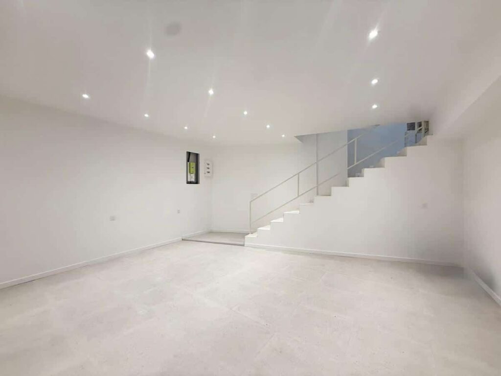 En sous-sol, un large escalier menant à un plateau de 45 m2, sanitaires.