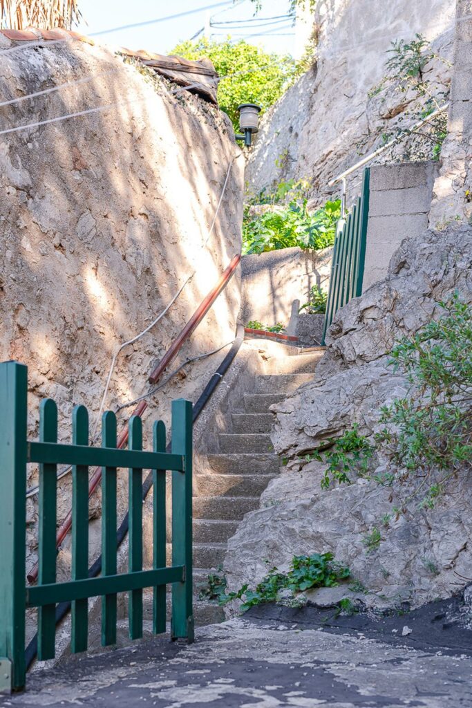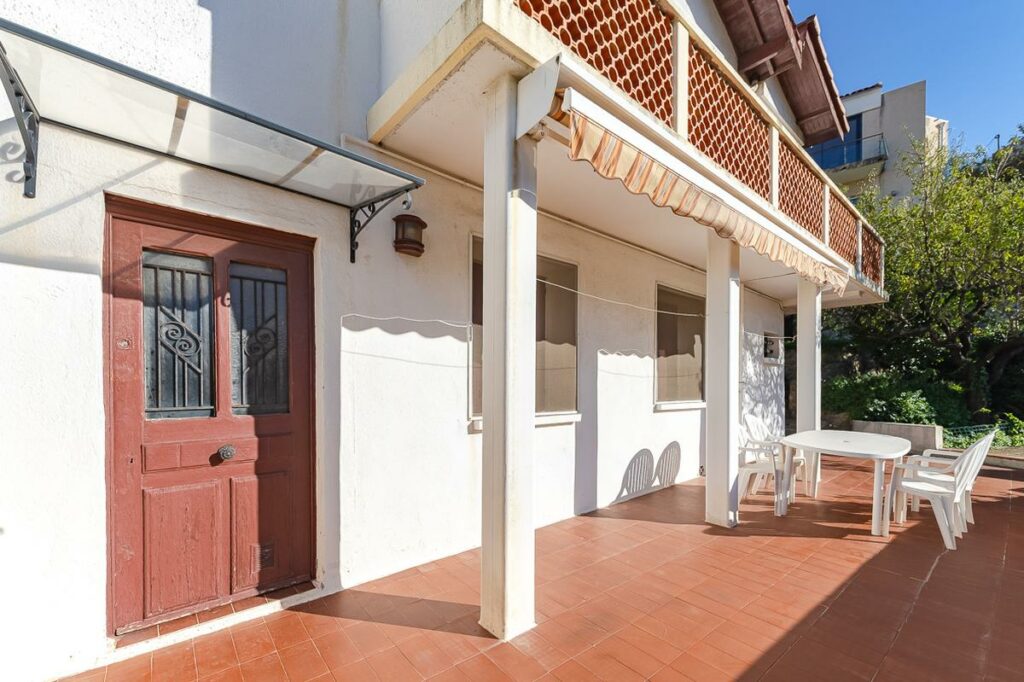 Nichée dans une rue piétonne discrète et au calme, cette maison de 100m2 environ présente un joli jardin en restanques avec vue sur la mer.